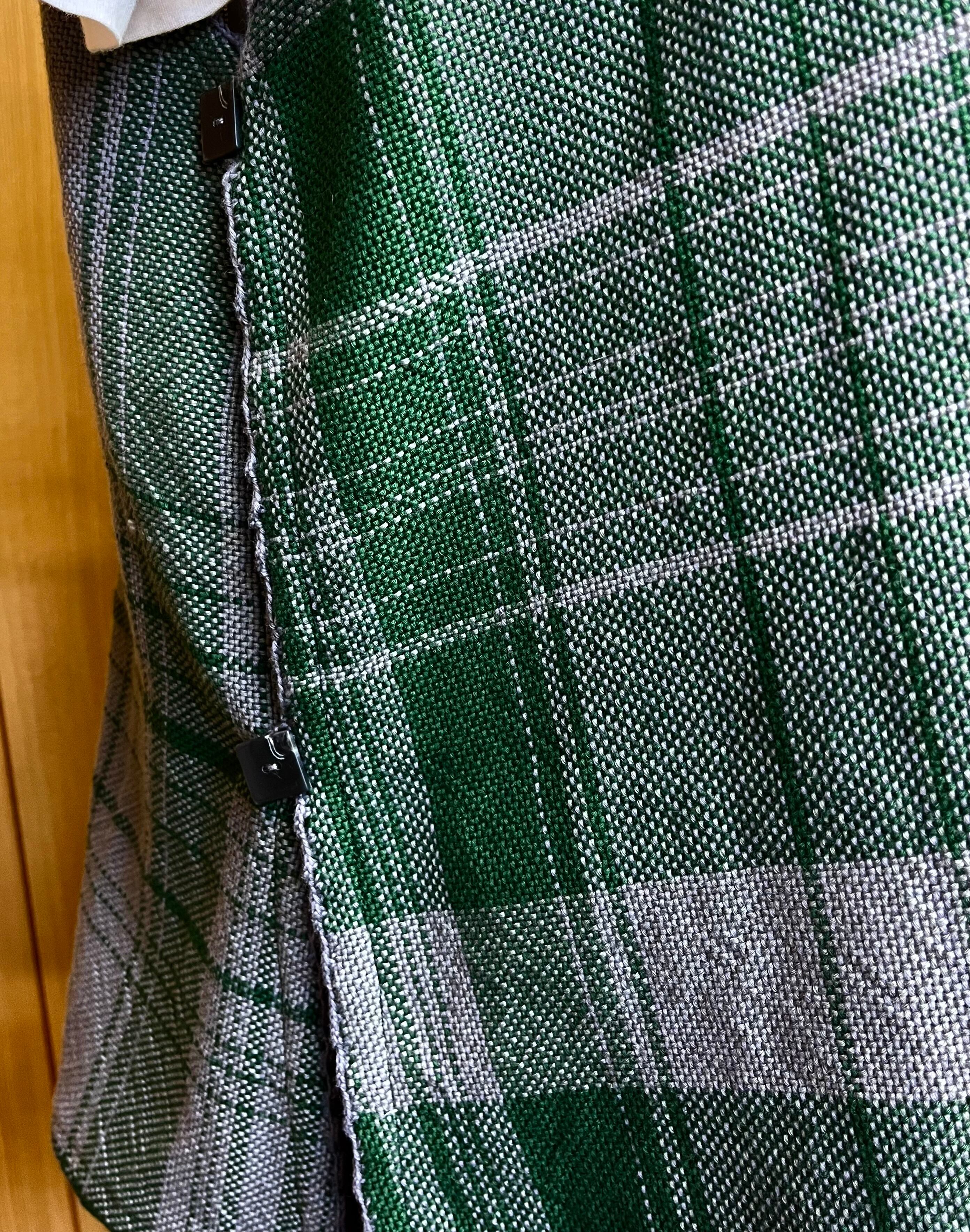 両サイドもボタンで脱ぎ着が楽にできます。地厚の綿素材でしっかりした織布です。