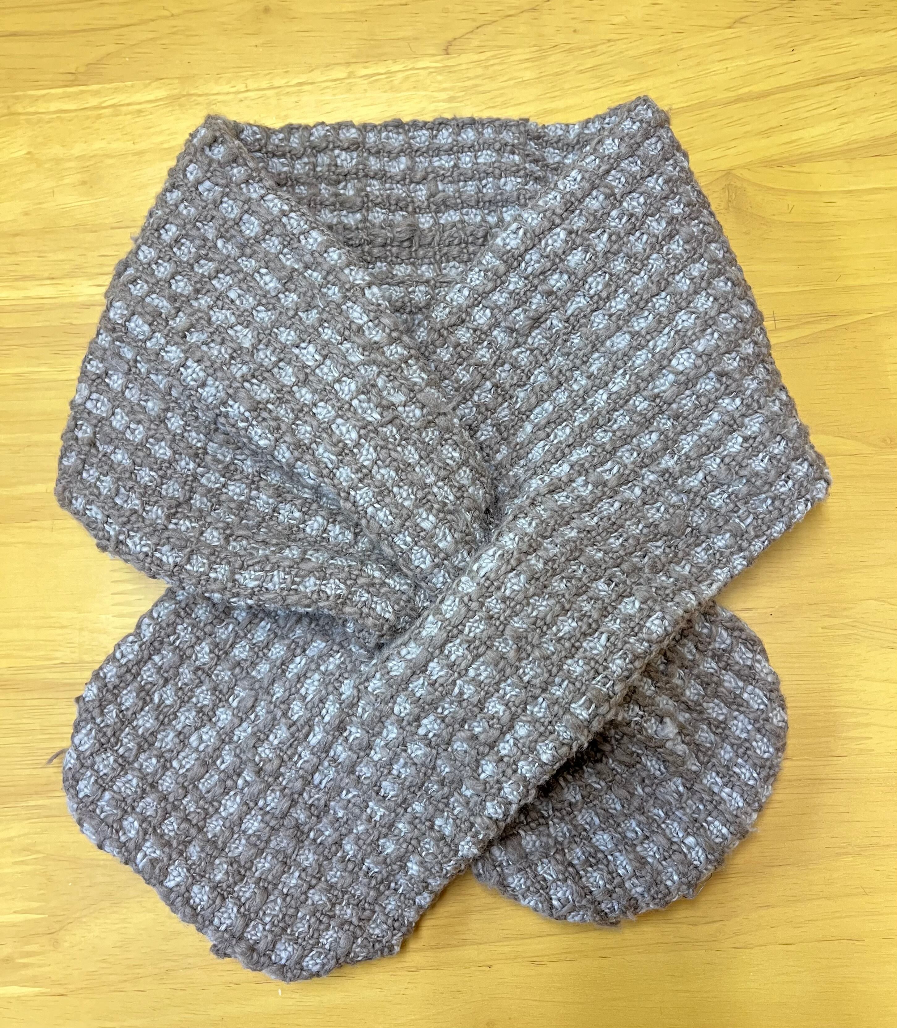 オーガニックコットンのふわふわ糸使用しました。ワッフル織でコットンなのにとても暖かくチクチクしない優しい風合いです。